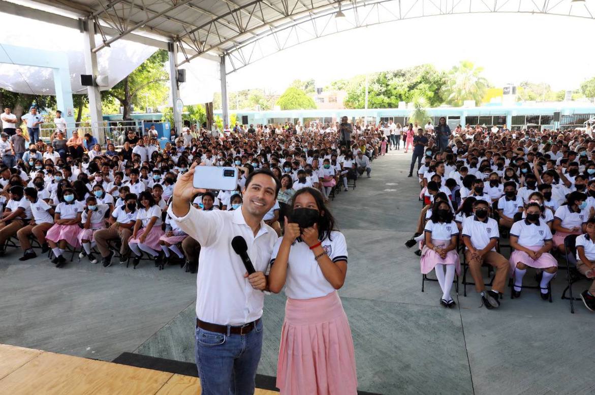 Para constatar los avances del programa Yucatán Digital, el Gobernador acudió a la Escuela Secundaria General número 4 “José Vasconcelos” del turno matutino y “Silvia Nelly Cuevas Aguilar” del vespertino, con el cual se está dotando de Internet a más de 1,200 alumnos tan sólo en este plantel para seguir transformando la educación en el estado.