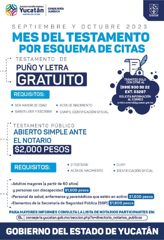 Anuncia Gobierno del Estado Mes del Testamento con descuentos de hasta el 100% en trámites