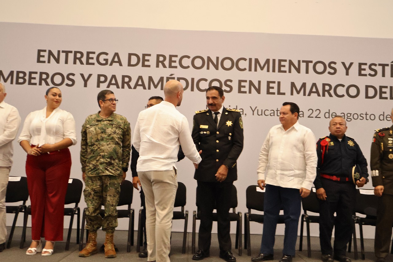 Durante la ceremonia, el C.P. Alejandro Vallado Arjona, vicepresidente de Asuntos Fiscales de CANACOME, entregó un estímulo económico al homenajeado, en un acto encabezado por el gobernador Joaquín Díaz Mena y el Secretario de Seguridad Pública, Luis Felipe Saidén Ojeda. Ambos funcionarios resaltaron el compromiso, la valentía y la dedicación del personal de bomberos en Yucatán.