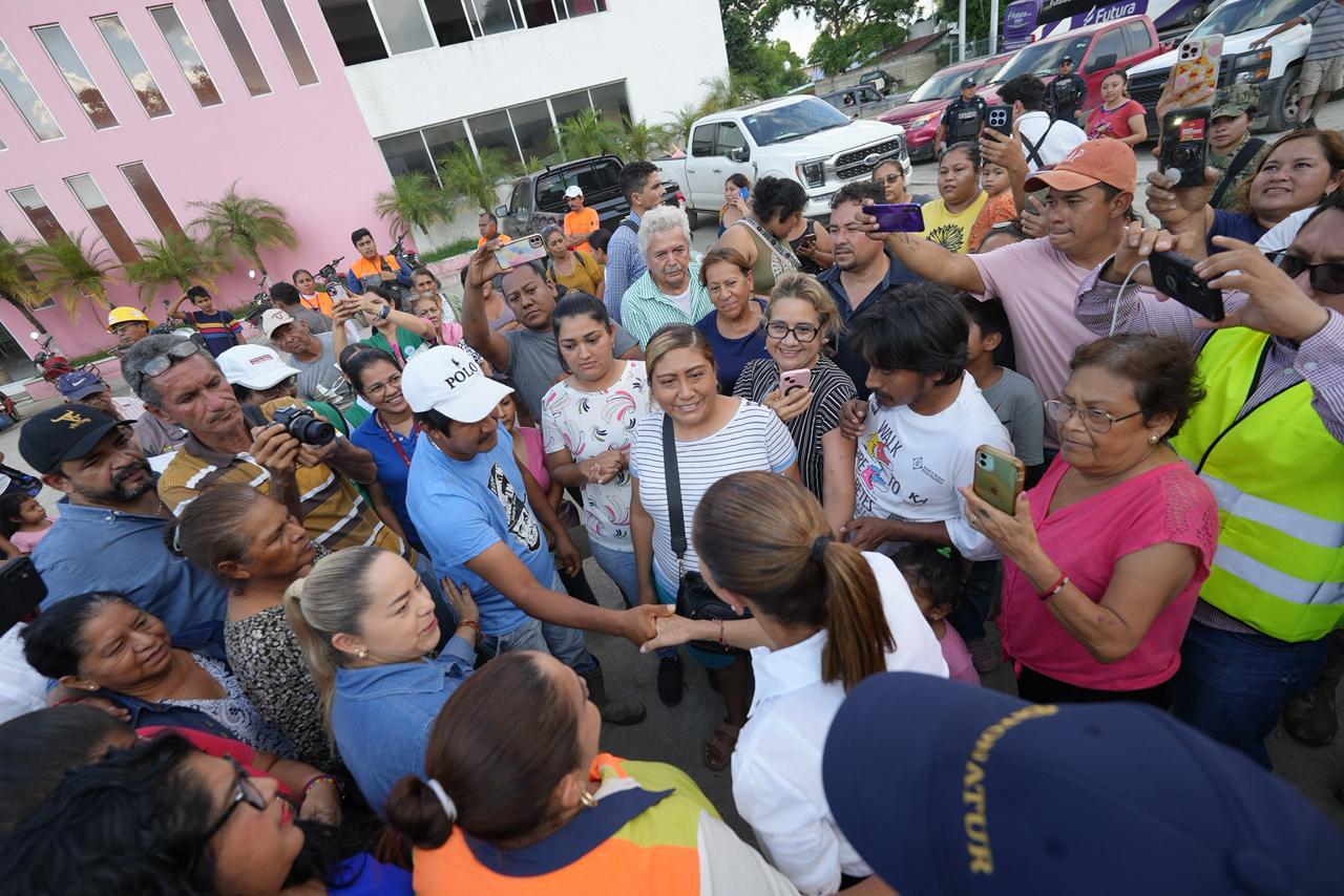 Acompañada por servidores públicos, supervisó los trabajos de limpieza y detalló que ya se realizan los censos por parte de la Secretaría de Bienestar para la entrega de apoyos. Además, destacó que las personas de las localidades aún incomunicadas están siendo atendidas con alimentos y agua a través de la Secretaría de Marina.