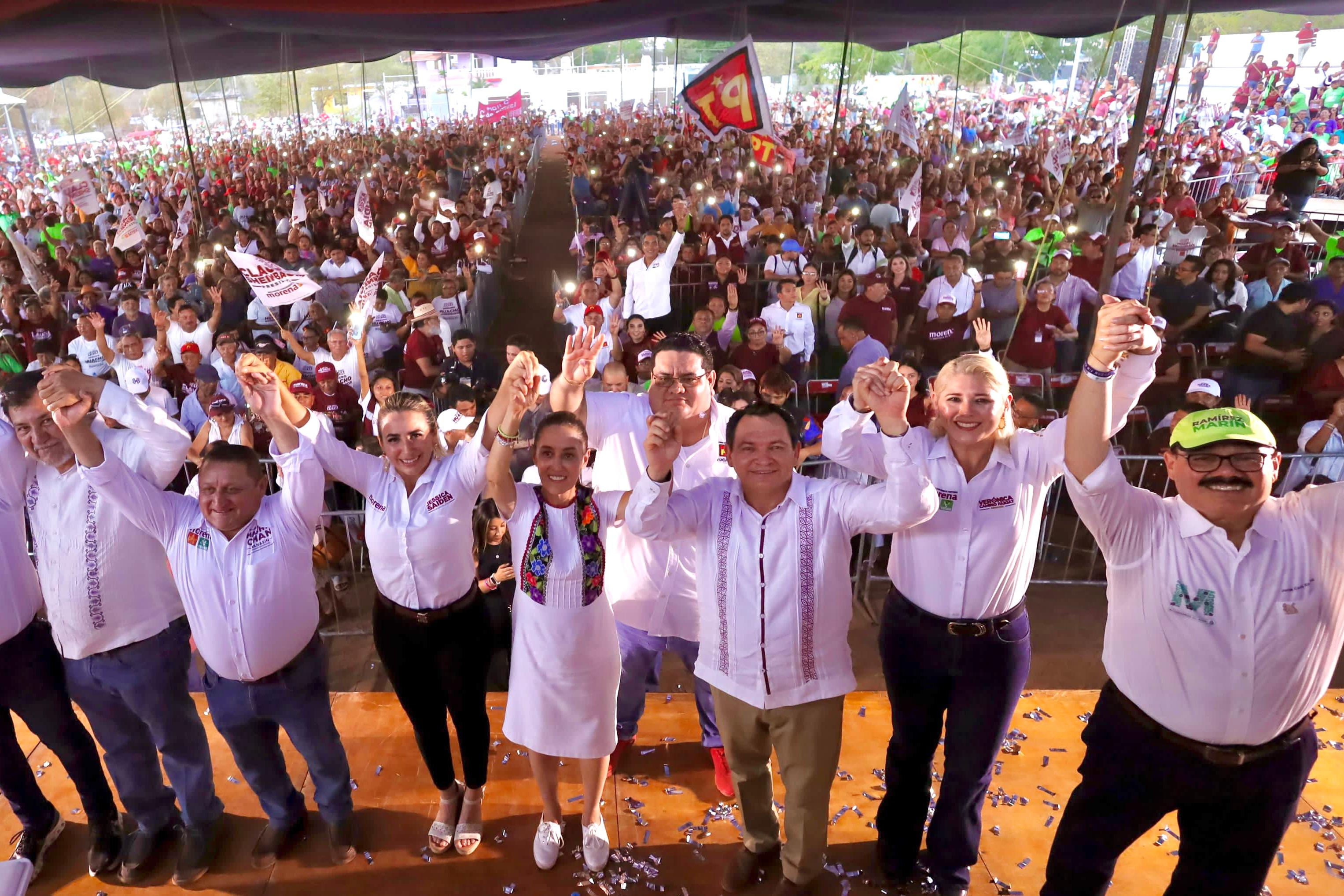 -Claudia Sheinbaum y Huacho Díaz Mena, trabajarán junto a Florentino “Masha” Chan, para que en Kanasín el Bienestar sea para todas y todos.