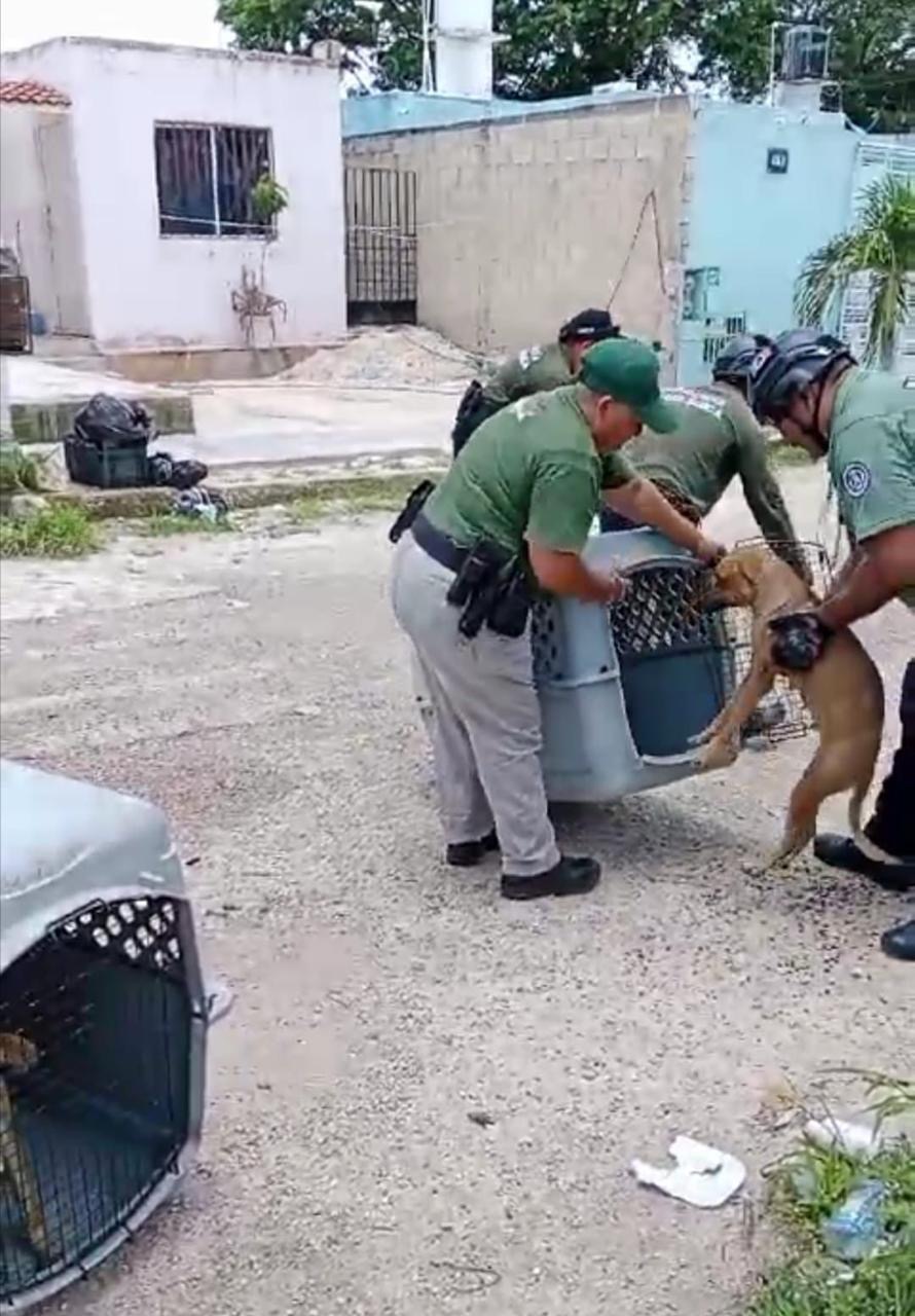 Por medio de una denuncia ciudadana, la Policía Ecológica de Kanasín rescató a cuatro perros en el predio marcado con el número 95-A de la calle 20 en el Fraccionamiento Dzoyolá.