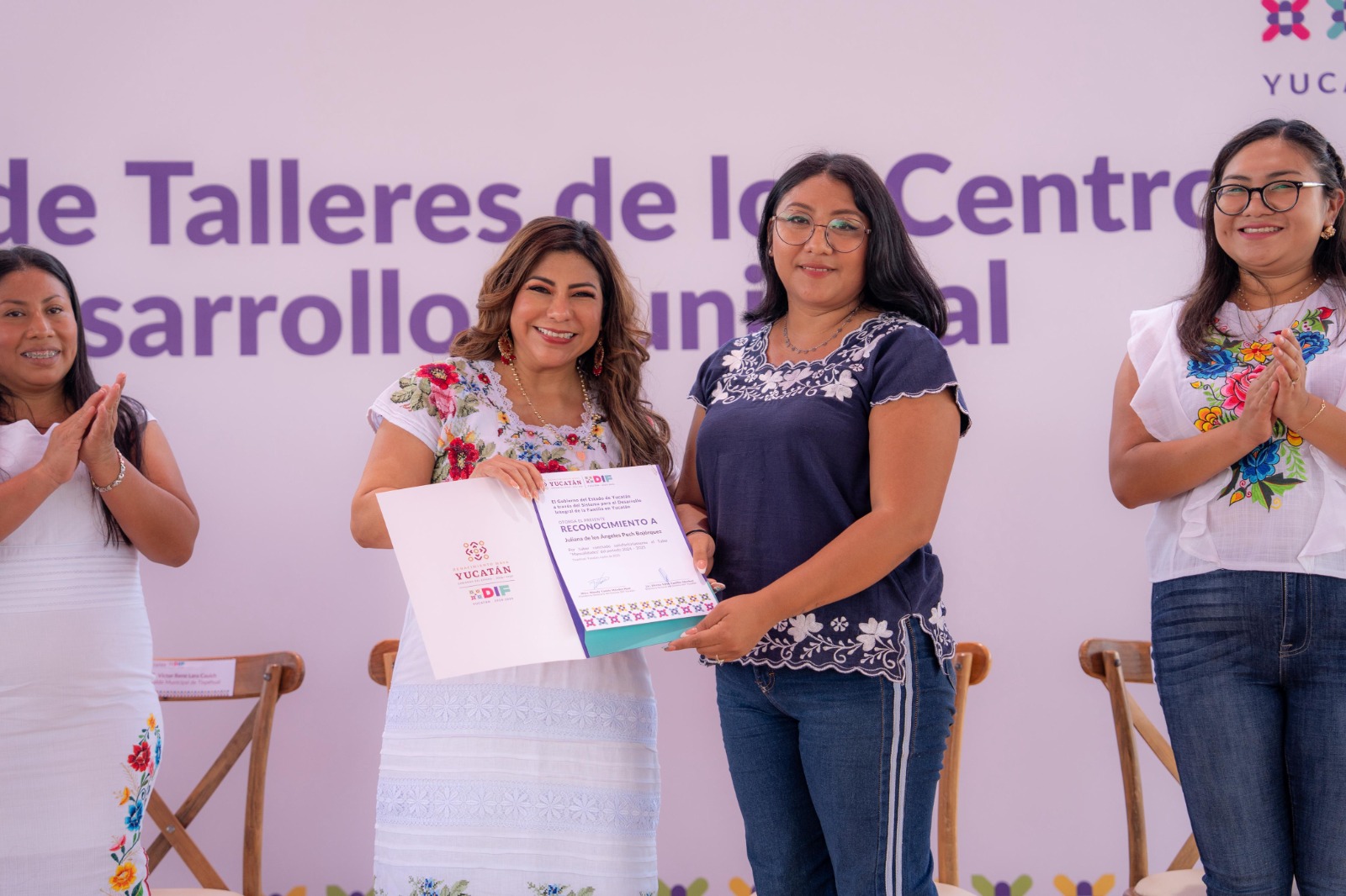 Durante las ceremonias de clausura, la presidenta del DIF Yucatán, Mtra. Wendy Méndez Naal, destacó el valor de estos centros como motores de transformación social. “Para muchas mujeres, estos talleres no solo representan un espacio de aprendizaje, sino una herramienta para mejorar su economía y autoestima. El desarrollo humano comienza sembrando sueños y brindando las condiciones para hacerlos realidad”, expresó.