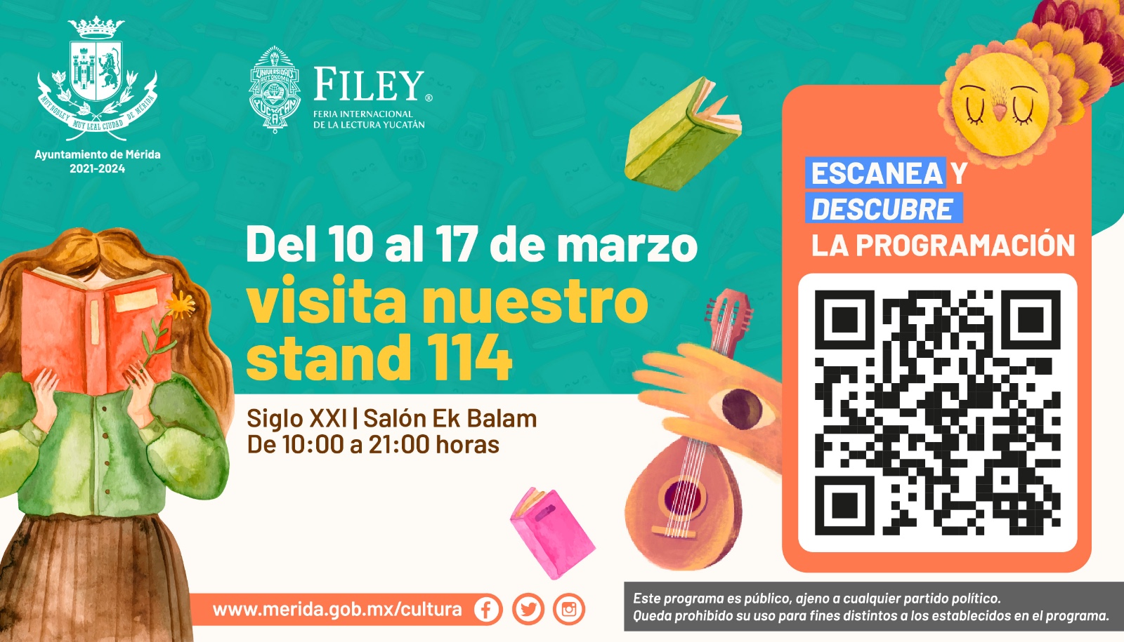 El stand de Cultura es el No. 114, se ubicará en el Salón Ek Balam del Centro de Convenciones Yucatán Siglo XXI y estará abierto toda la semana que dure la FILEY.