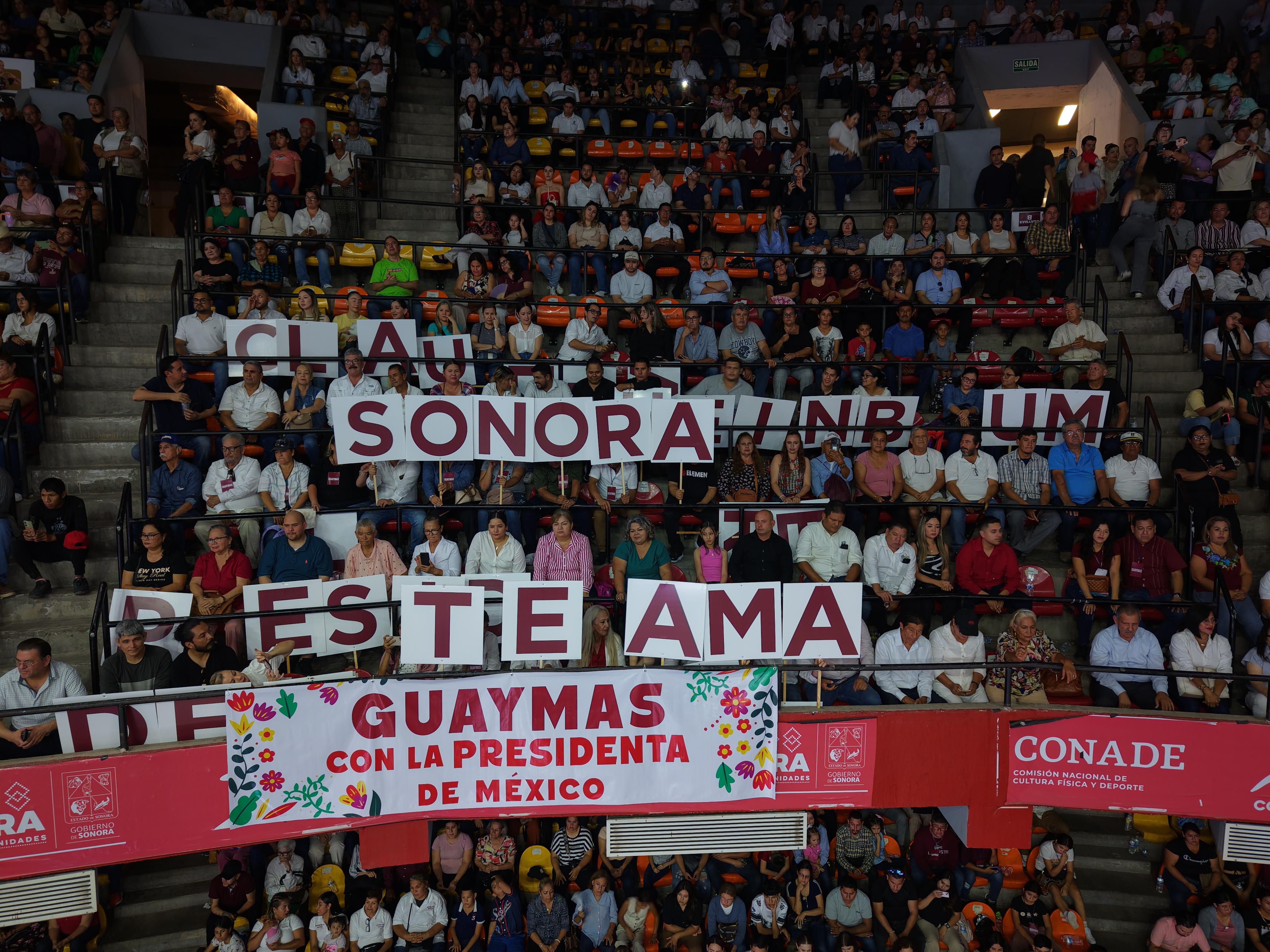 Además, la mandataria informó que en Sonora más de un millón 8 mil 700 personas reciben apoyos de los Programas para el Bienestar, con una inversión cercana a los 20 mil millones de pesos anuales. Entre ellos destacan la Pensión para Adultos Mayores, la Pensión para Personas con Discapacidad, Jóvenes Construyendo el Futuro, Sembrando Vida, Bienpesca y becas Benito Juárez, entre otros.