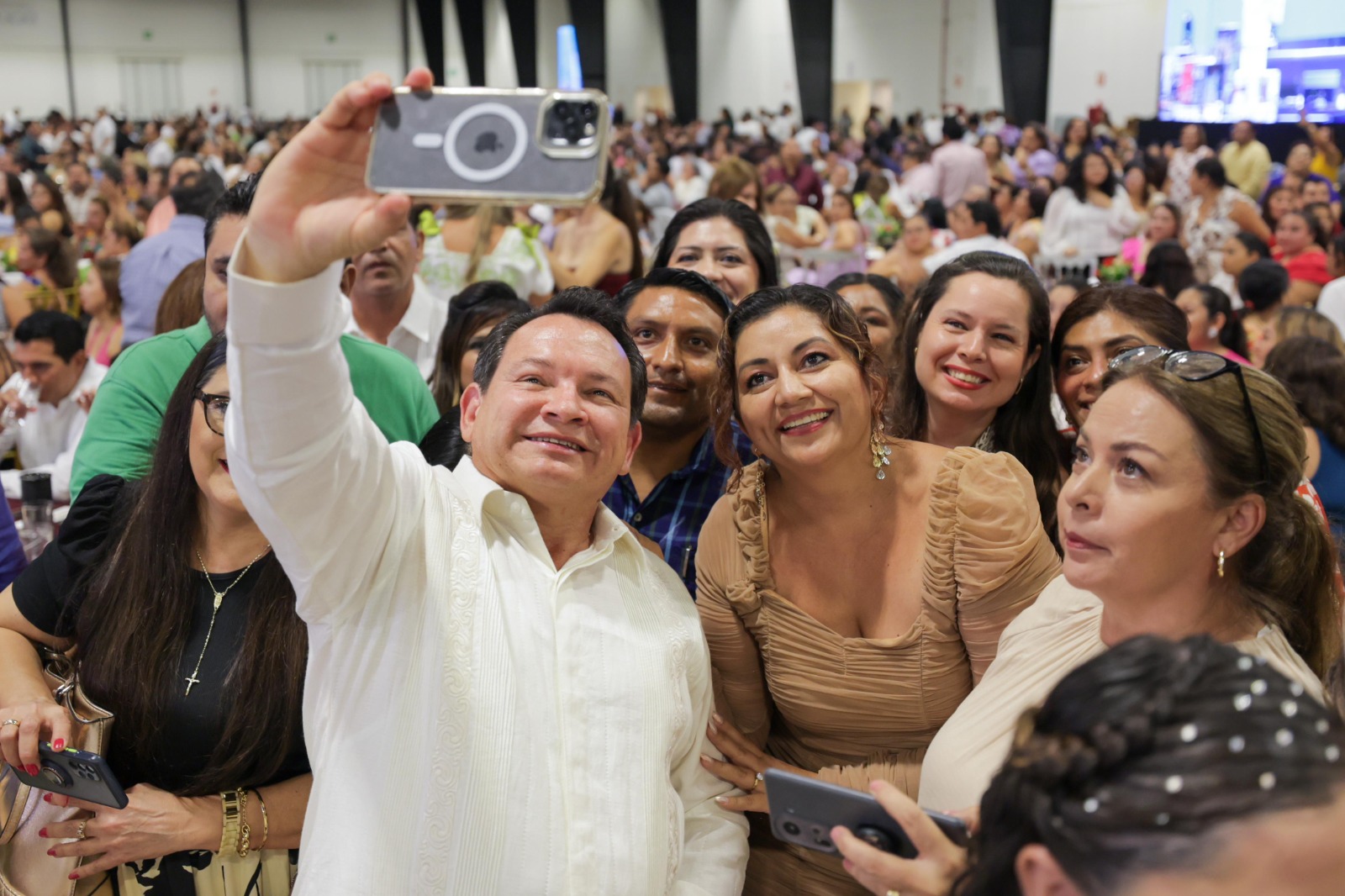 Acompañado de su esposa y presidenta honoraria del DIF Yucatán, Wendy Méndez Naal, el mandatario estatal expresó su admiración y respeto por la vocación del magisterio, reconociendo su entrega diaria y su papel esencial en la formación de generaciones.