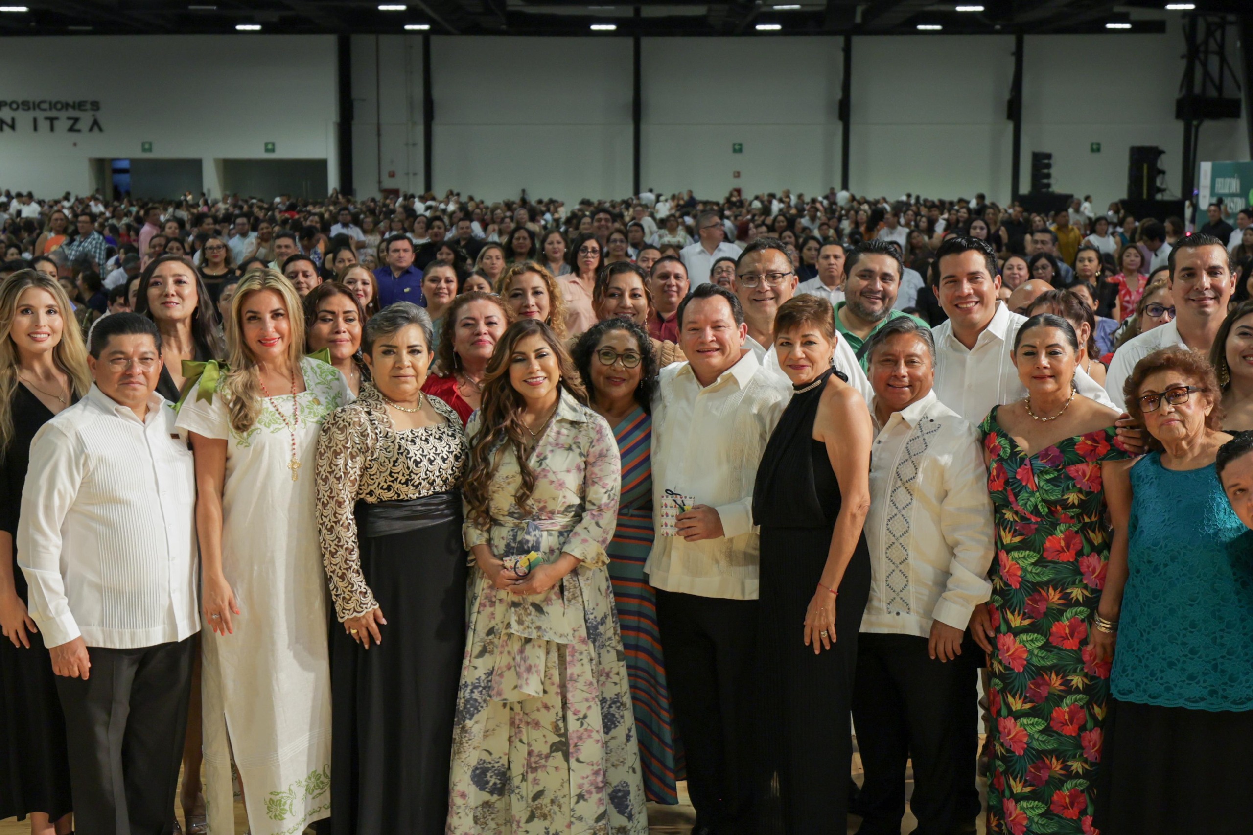 Durante una ceremonia conmemorativa, Díaz Mena expresó que las maestras y maestros son pilares fundamentales en la construcción del presente y el futuro de Yucatán, y destacó que “no hay Renacimiento Maya ni transformación sin el trabajo de quienes educan”.