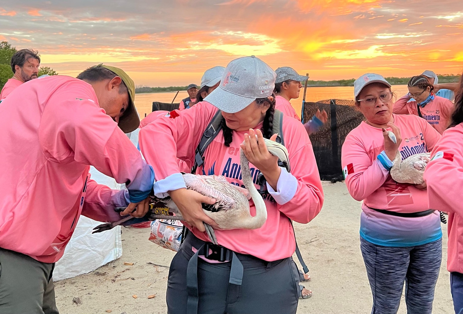 En coordinación con la Conanp, se realizaron jornadas de anillamiento en las Reservas de la Biosfera Ría Lagartos y Ría Celestún, con el objetivo de fortalecer el monitoreo y la conservación del flamenco del Caribe, especie emblemática de Yucatán.