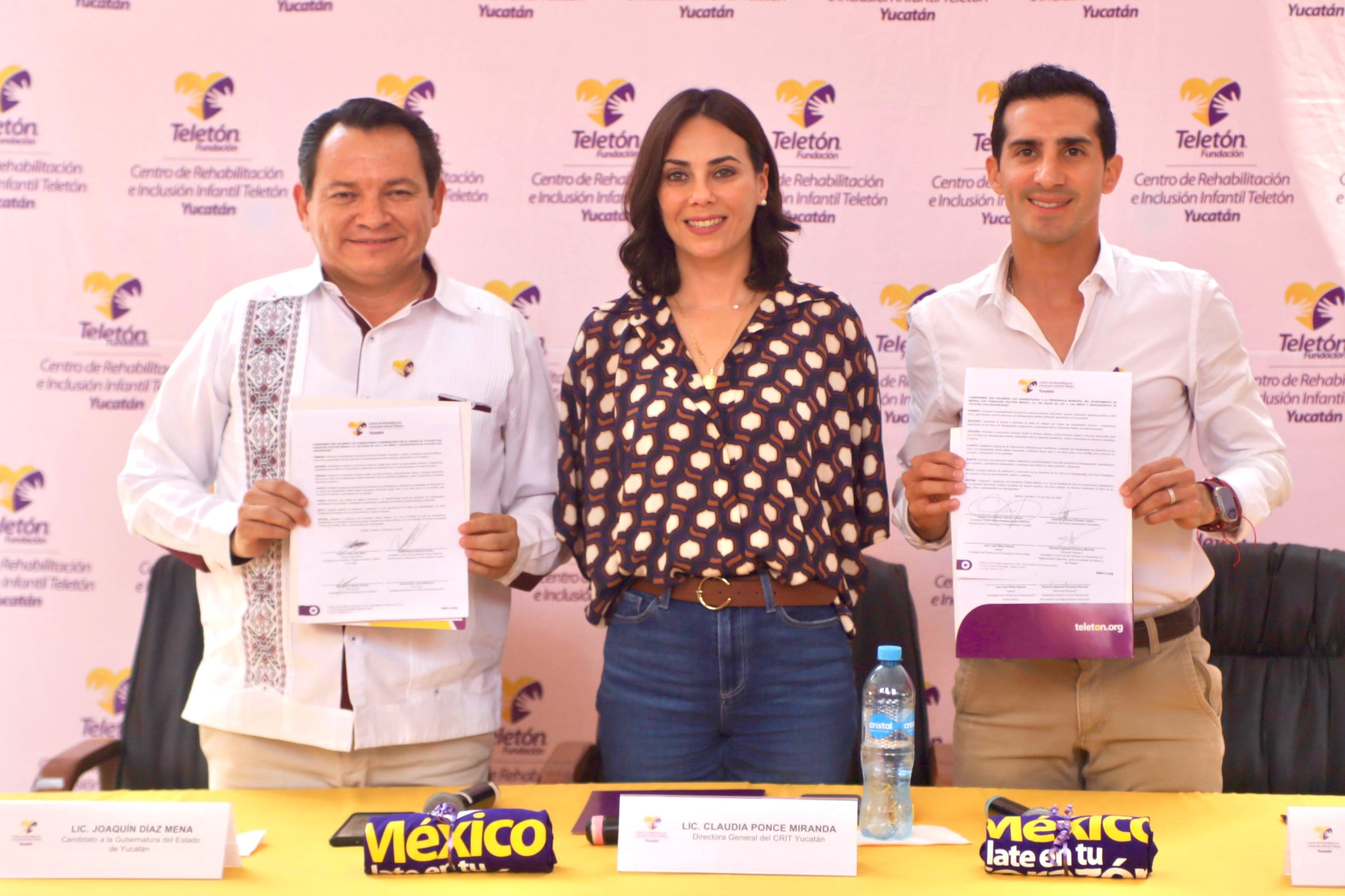 Los candidatos a la gubernatura de Yucatán, Joaquín “Huacho” Díaz Mena y a la alcaldía de Mérida, Rommel Pacheco, firmaron carta compromiso con el Centro de Rehabilitación e Inclusión Infantil Teletón (CRIT) Yucatán, para garantizar que promoverán estrategias a favor de las niñas, niños y jóvenes con discapacidad del estado.
