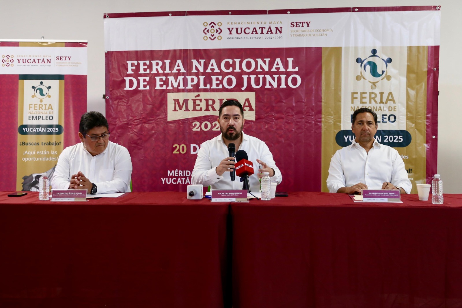 Mérida, Yucatán, 19 de junio de 2025.– Con el propósito de fomentar el empleo formal, digno y bien remunerado, el Gobierno del Estado anunció la realización de la Feria Nacional de Empleo Mérida Junio 2025, que se llevará a cabo este viernes 20 de junio, de 8:00 a 15:00 horas, en el Centro de Convenciones Yucatán Siglo XXI.