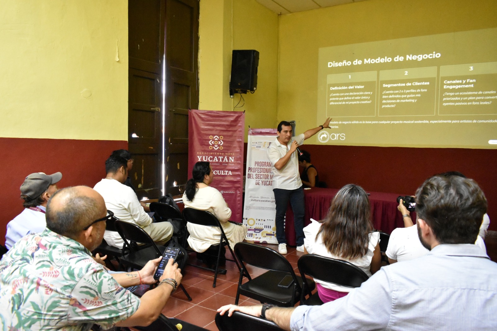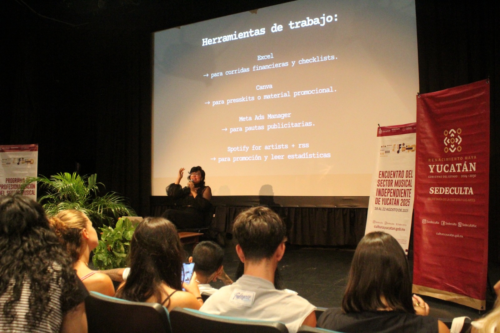 Las actividades se realizaron en sedes como el teatro Armando Manzanero, el Palacio de la Música y la Casa de la Cultura de Ticul, con la participación de especialistas, promotores, gestoras y responsables de foros culturales que compartieron su visión para enriquecer la agenda del sector musical independiente.