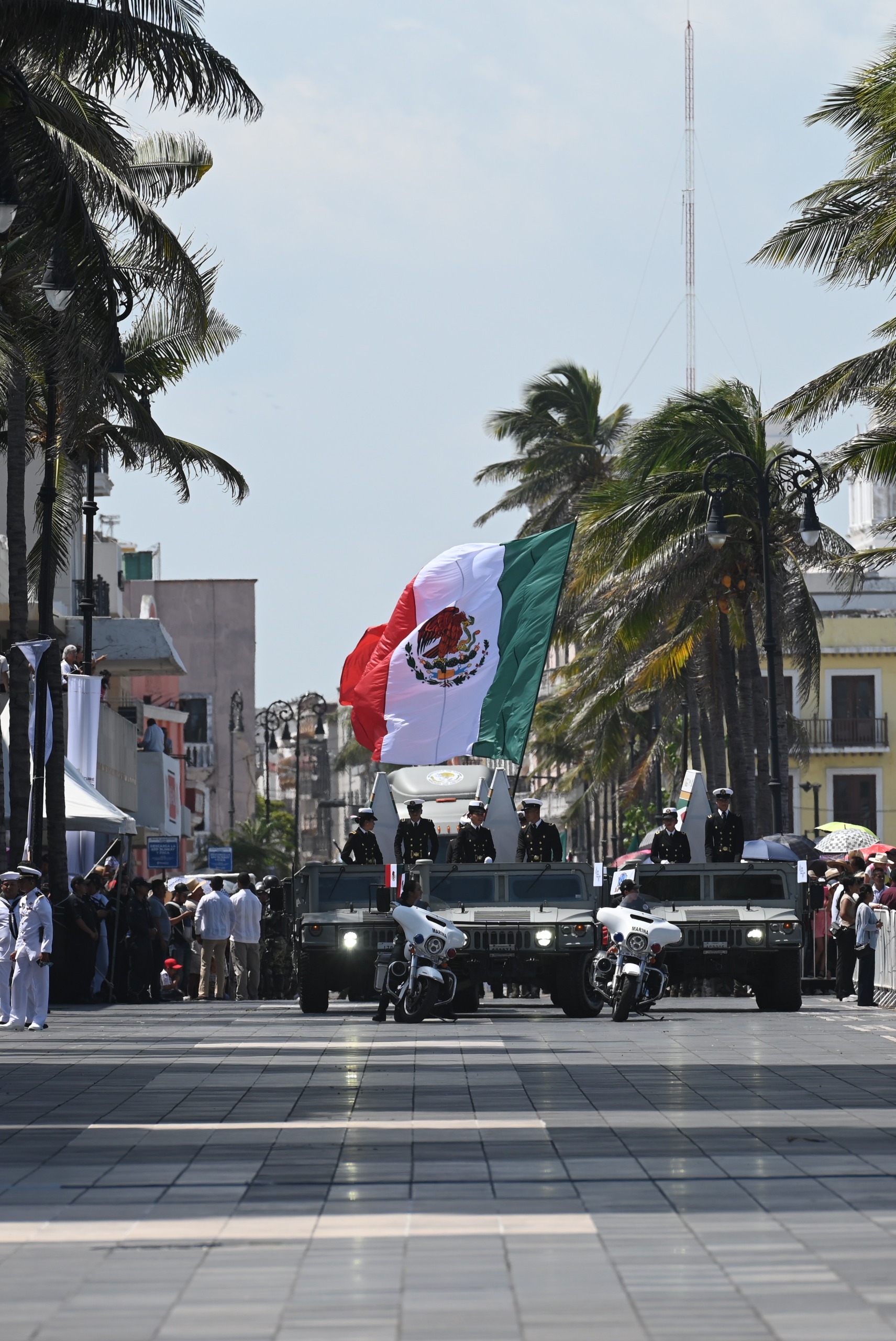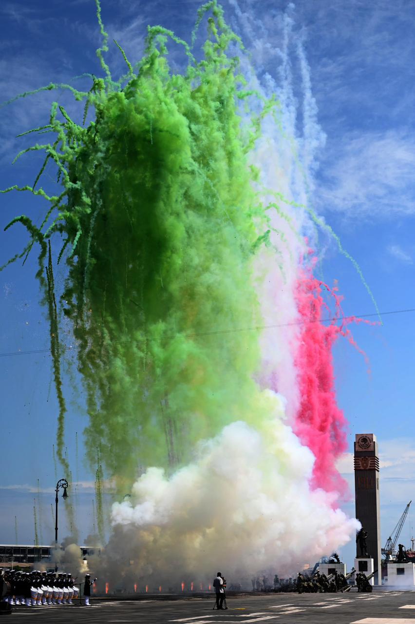 La mandataria presenció el Desfile Conmemorativo por el 204 aniversario de la Armada de México, en el que participaron 3 mil 871 efectivos de la Semar: 1,275 mujeres y 2,596 hombres, acompañados de 15 banderas de guerra, 10 estandartes, 41 guiones, ocho unidades de superficie, 24 aeronavales, 24 embarcaciones menores, 70 vehículos operativos, 38 caninos, ocho botargas y un Turibús con 25 niñas y niños.