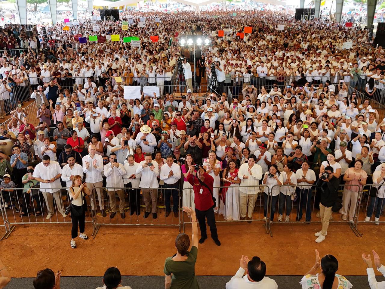 La Presidenta también destacó obras estratégicas para Yucatán: la Línea a Puerto Progreso del Tren Maya, la ampliación del puerto, nuevas universidades, preparatorias, hospitales, el gasoducto para las plantas de la CFE, así como el programa Vivienda para el Bienestar, que contempla 40 mil hogares.