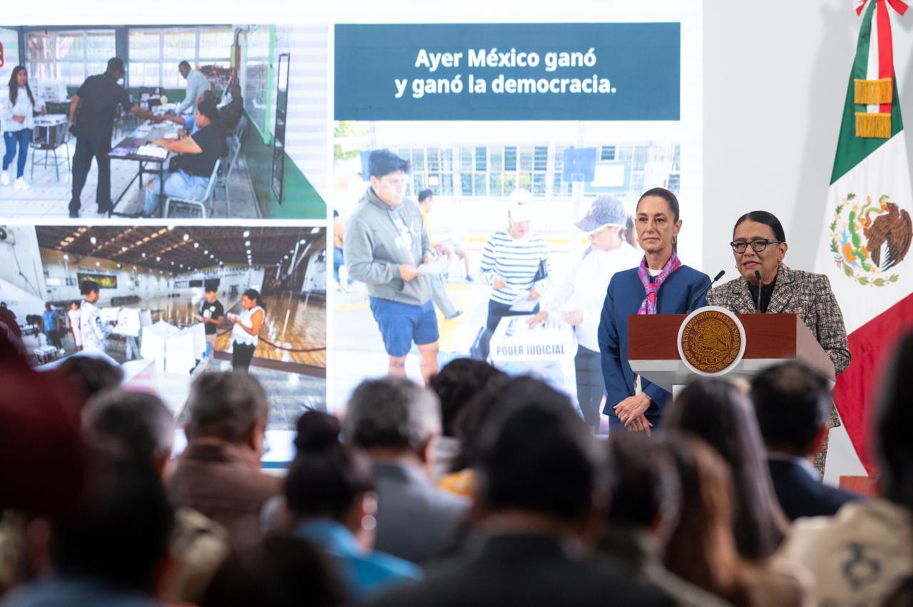 “La voluntad del pueblo se manifestó con claridad. Por primera vez en nuestra historia, el pueblo eligió directamente a ministras, ministros, magistradas, magistrados, juezas y jueces. Esto representa un paso definitivo hacia un verdadero Estado de Derecho”, expresó la mandataria a través de un mensaje en redes sociales.