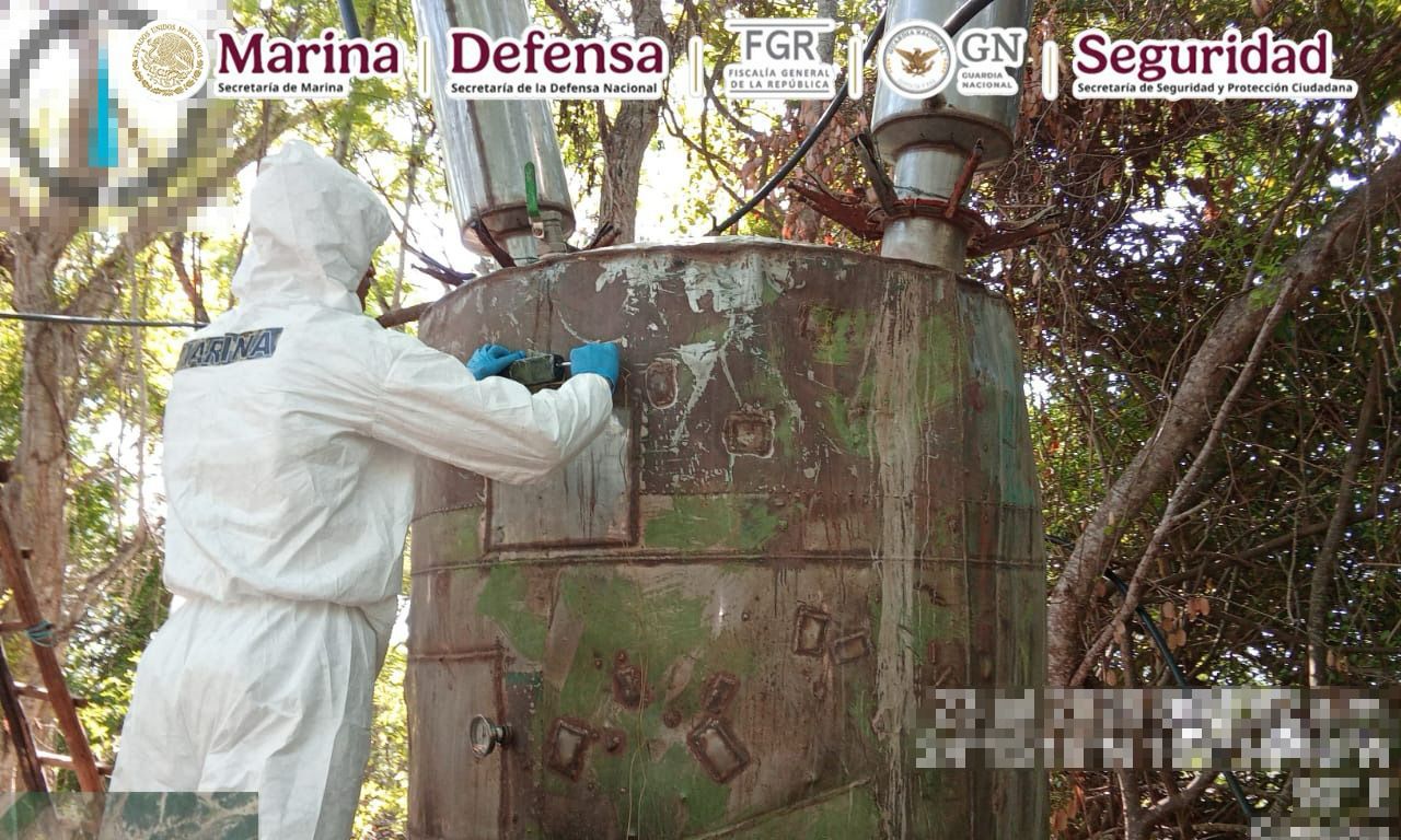 En lo que va del año, la Marina, en coordinación con el Gabinete de Seguridad, ha asegurado más de 423 toneladas de sustancias químicas relacionadas con laboratorios clandestinos.