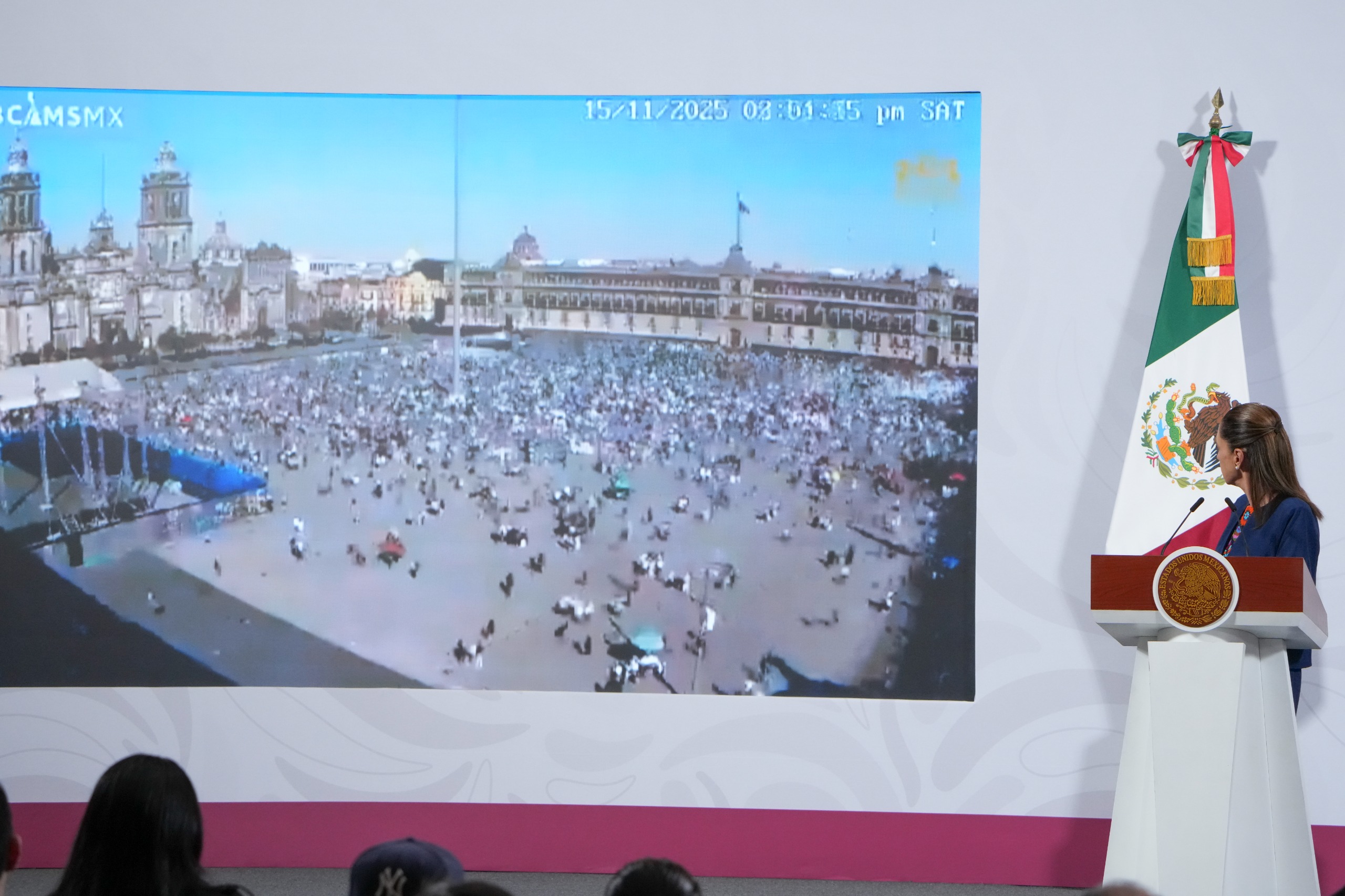 Ciudad de México, 17 de noviembre de 2025.- Ante la violencia que se registró en la marcha del 15 de noviembre, la Presidenta Claudia Sheinbaum Pardo reiteró que a la Cuarta Transformación de la Vida Pública de México no la detiene nadie y puntualizó que su gobierno no caerá en provocaciones, por ello hizo un llamado a realizar movilizaciones pacíficas.