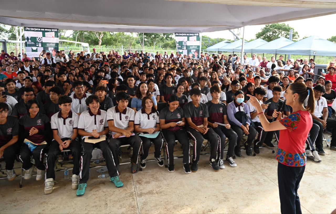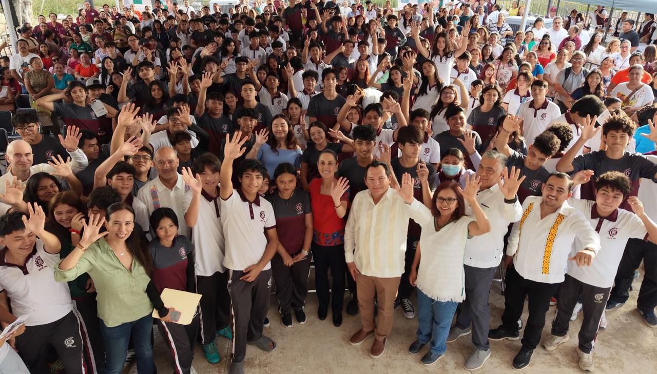 Mérida, Yucatán.— Durante una asamblea realizada en el CBTis No. 305, la presidenta Claudia Sheinbaum sostuvo un encuentro directo con estudiantes, donde reafirmó su compromiso de ampliar las oportunidades educativas en la entidad y fortalecer la infraestructura escolar.
