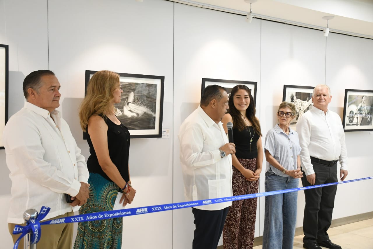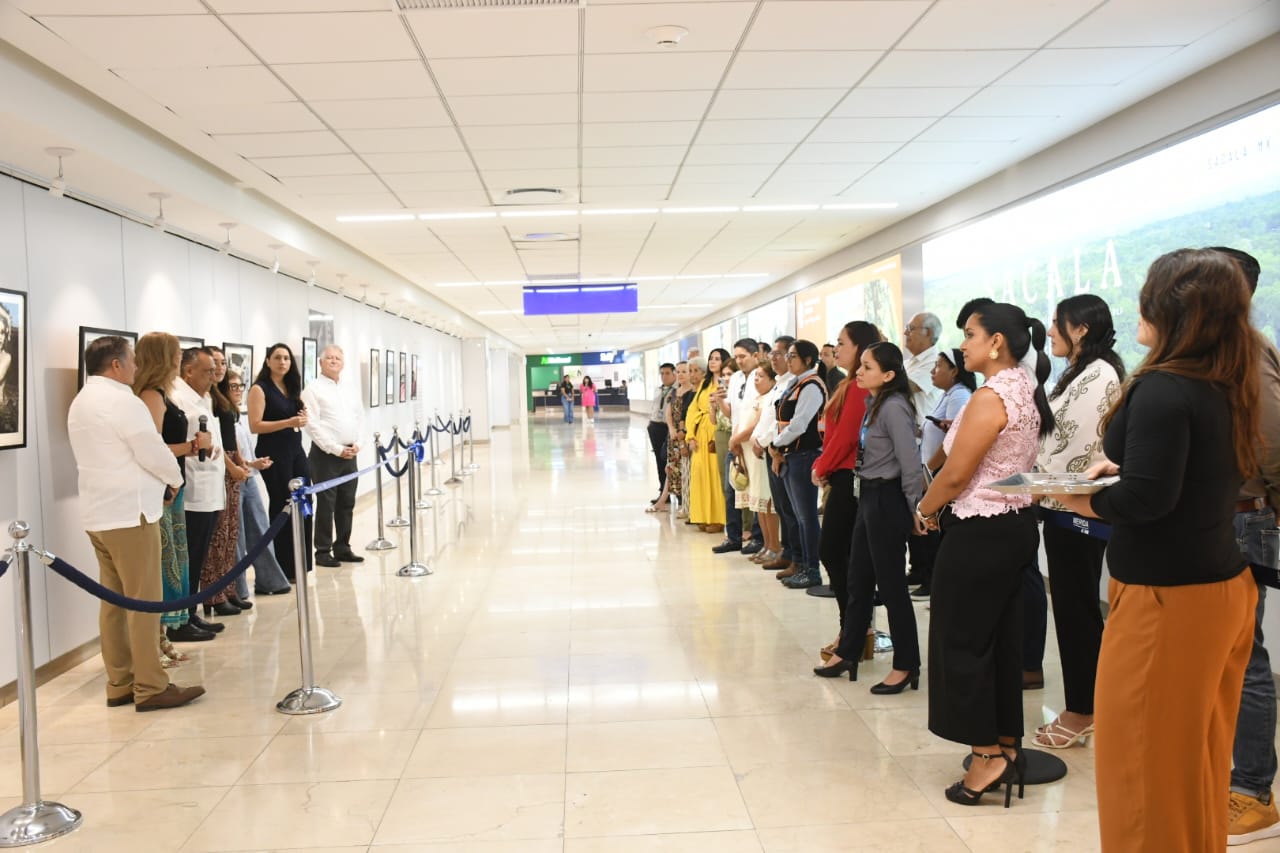 El acto fue encabezado por el Lic. Héctor Navarrete Muñoz, Director de Aeropuertos Regionales de Grupo ASUR, quien recordó que esta es la exposición número 568 organizada por el grupo en casi tres décadas de impulso cultural. También asistieron figuras como Karen Achach, Lupita Quintal y autoridades aeroportuarias.