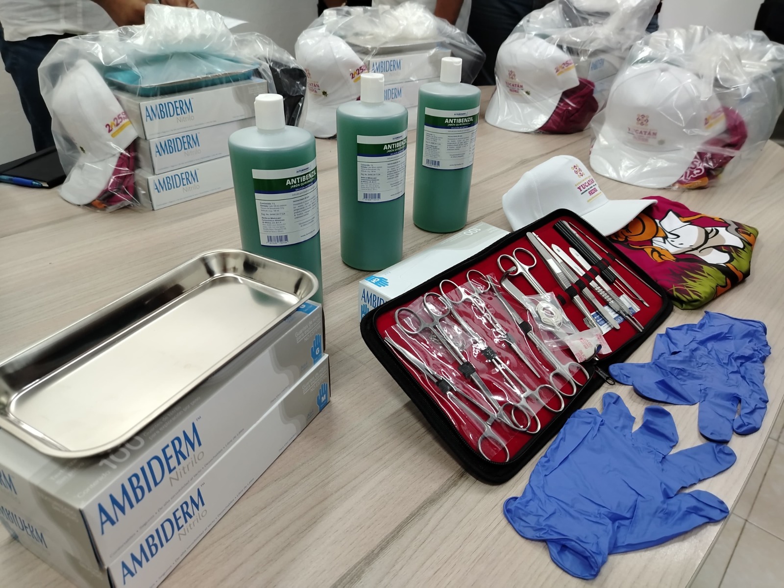 Entre los insumos entregados se encuentran estuches quirúrgicos con 20 piezas, bandejas médicas, guantes de nitrilo y jabón quirúrgico, asegurando que el personal cuente con las herramientas necesarias para la atención del ganado.
