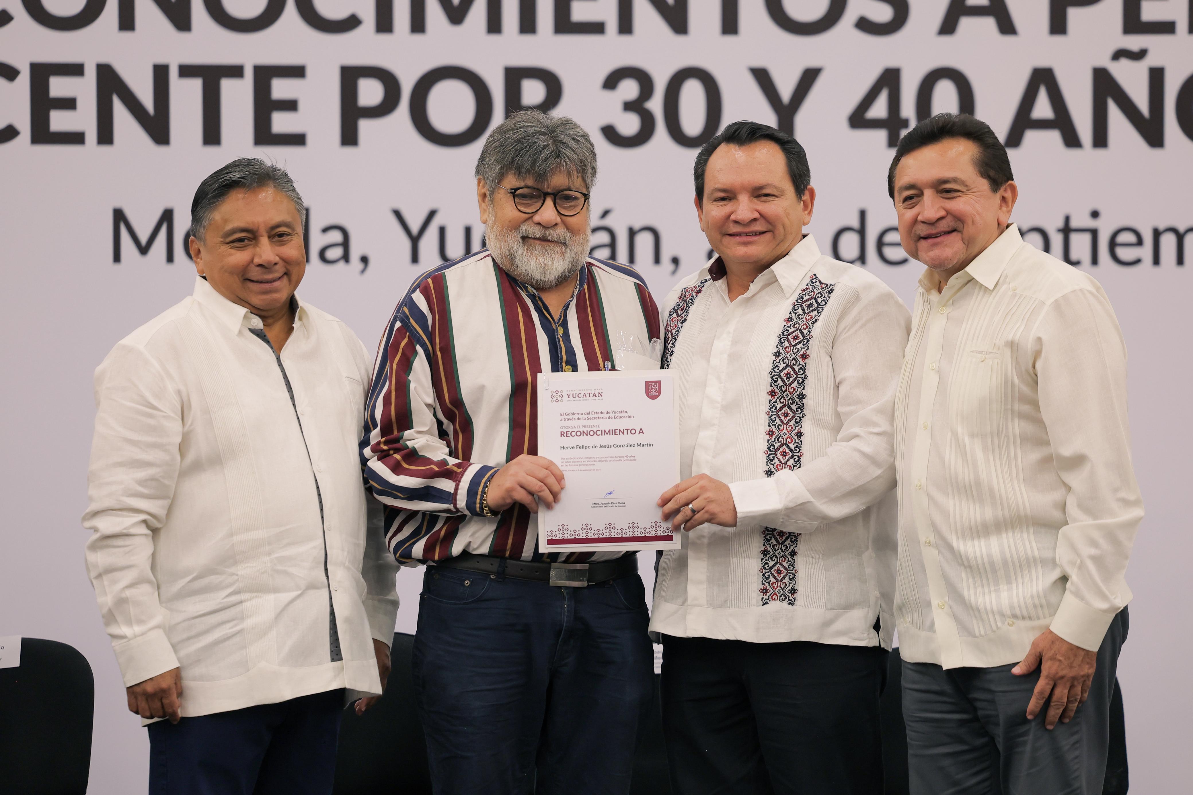 En la ceremonia se subrayó que esta es la primera ocasión que un Gobierno estatal reconoce con incentivos de este tipo a docentes y personal administrativo de estos subsistemas, los cuales atienden a más de 36 mil jóvenes en todo Yucatán.