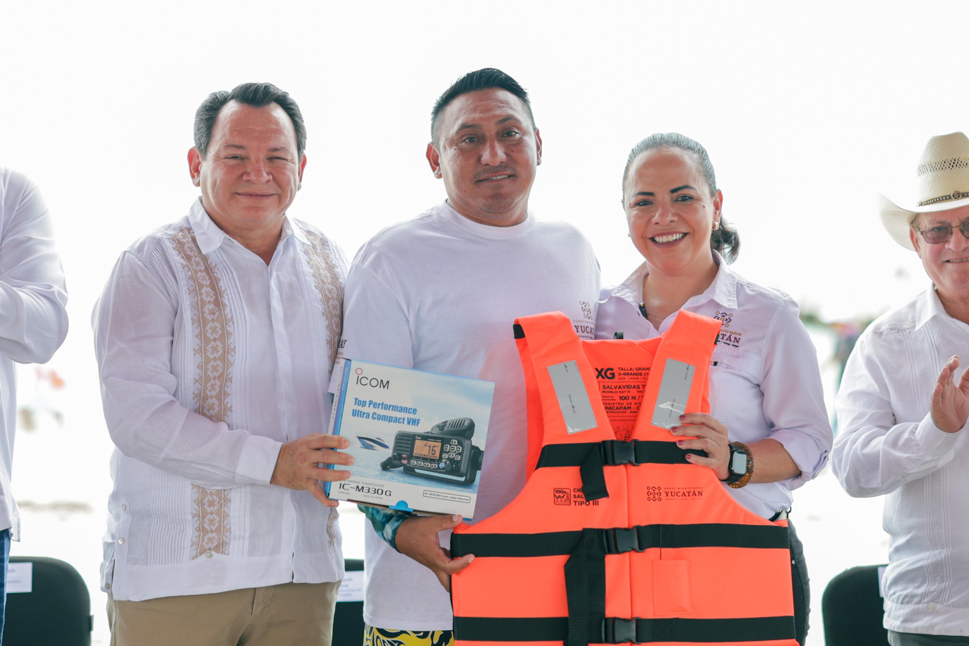 Yucatán fortalece la seguridad marítima con entrega de chalecos y radios a pescadores