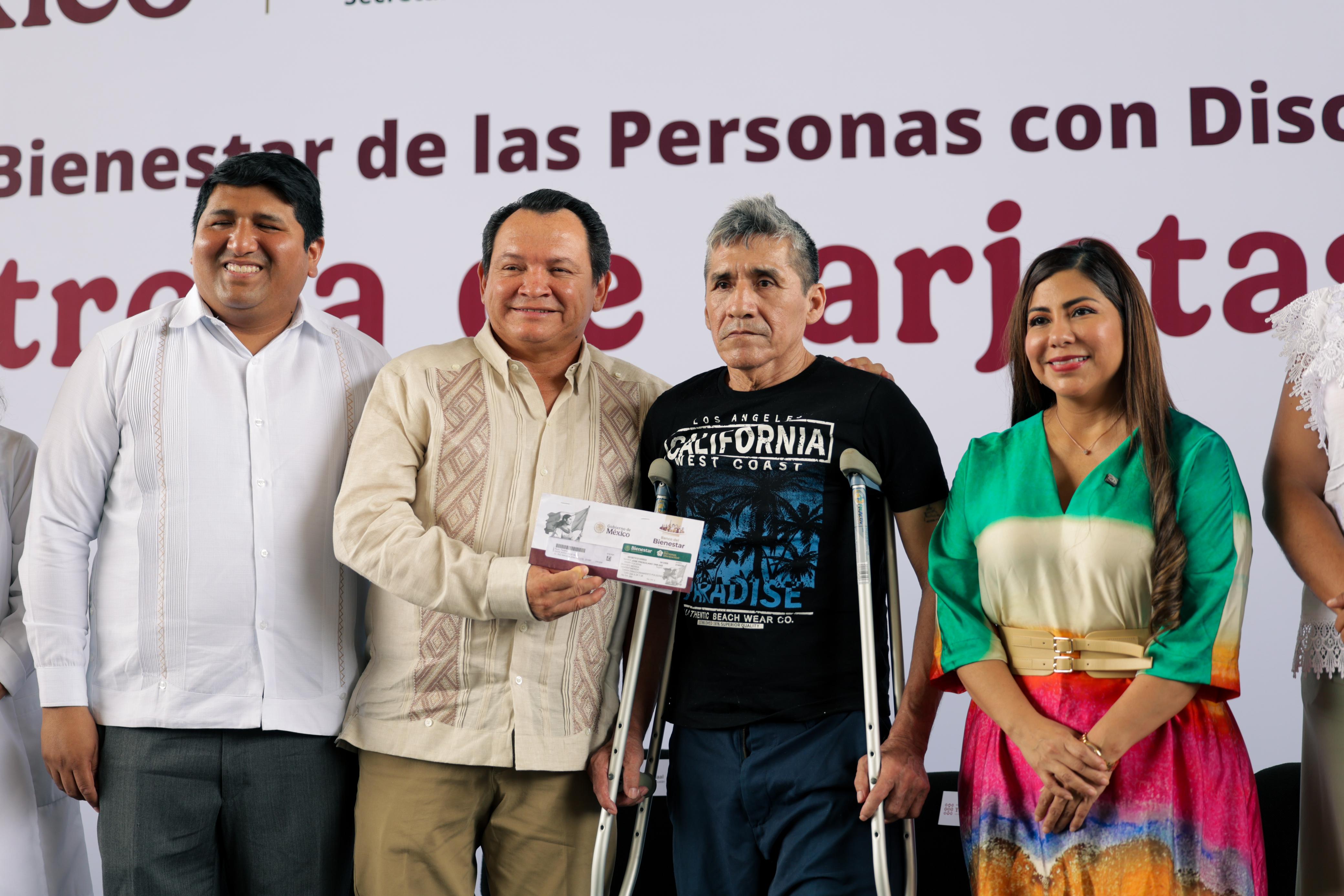 Mérida, Yucatán, 16 de junio de 2025.- Con la entrega simbólica de tarjetas bancarias, el Gobierno del Estado de Yucatán oficializó la universalización de la Pensión para el Bienestar de las Personas con Discapacidad Permanente, lo que permitirá que 31 mil 663 yucatecos accedan a un ingreso estable de $3,200 pesos bimestrales.