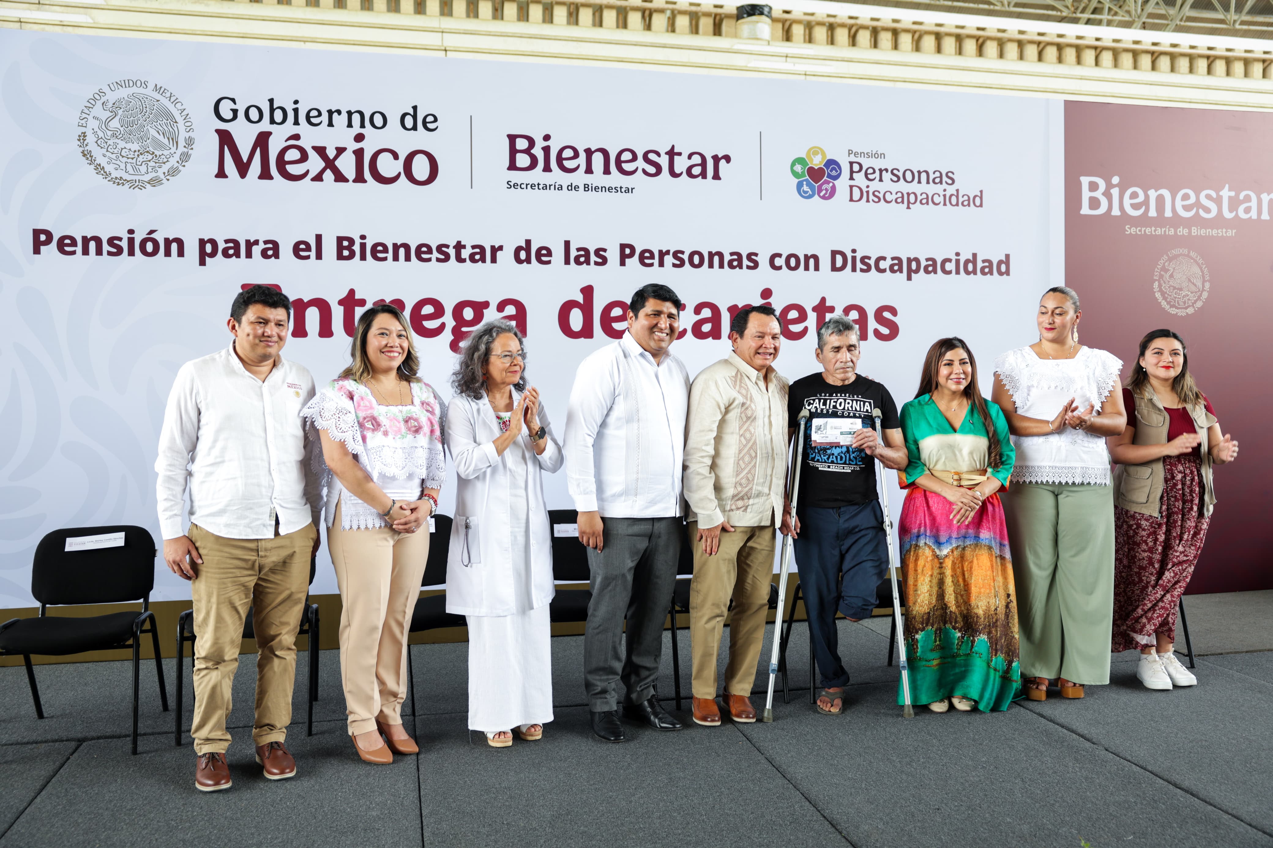 Por su parte, Rogerio Castro Vázquez, delegado de Programas para el Bienestar en Yucatán, recordó que anteriormente esta pensión solo era aplicable a personas de 0 a 29 años, pero con la firma del convenio se logró ampliarla a todos los rangos de edad.